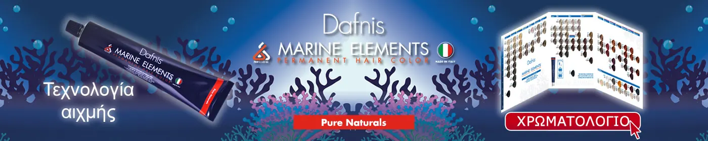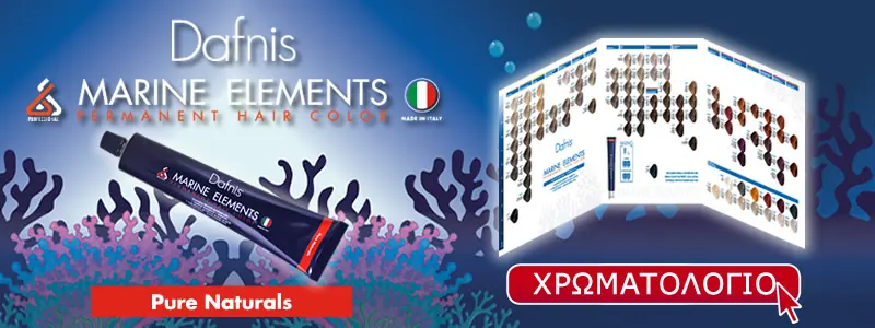 Κρεμώδης μόνιμη βαφή μαλλιών Marine Elements από τη DAFNIS, εμπλουτισμένη με στοιχεία θαλάσσιας προέλευσης και κερατίνη. Η καινοτόμος περιποιητική φόρ