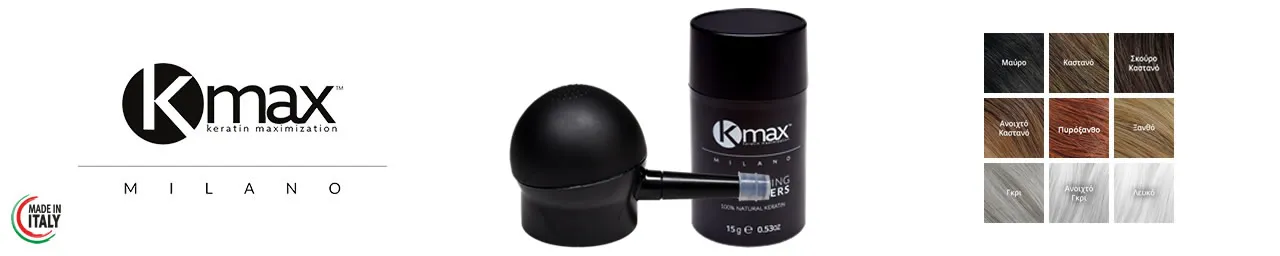 Μικροΐνες φυσικής κερατίνης από την KMAX. Επικάθονται σταθερά στα μαλλιά και αναμειγνύονται τέλεια με αυτά, εξαφανίζοντας σε λίγα μόνο δευτερόλεπτα κάθ