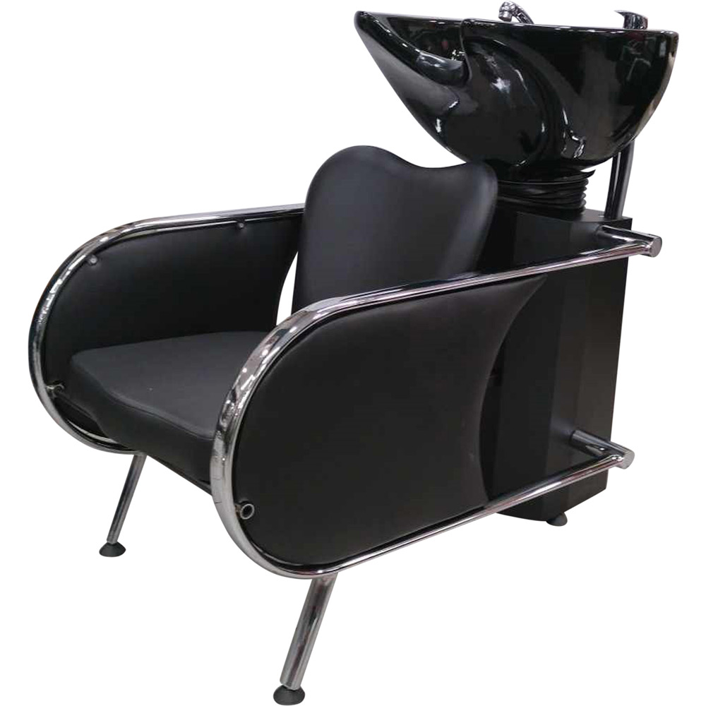Νιπτήρας από μαύρη πορσελάνη με δυνατότητα κλίσης για εύκολη προσαρμογή, εξοπλισμένος με μίκτη και τηλέφωνο.