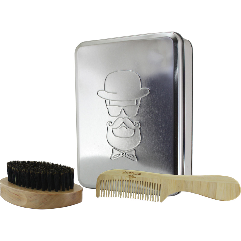 Σετ περιποίησης γενειάδας σε μεταλλική κασετίνα.