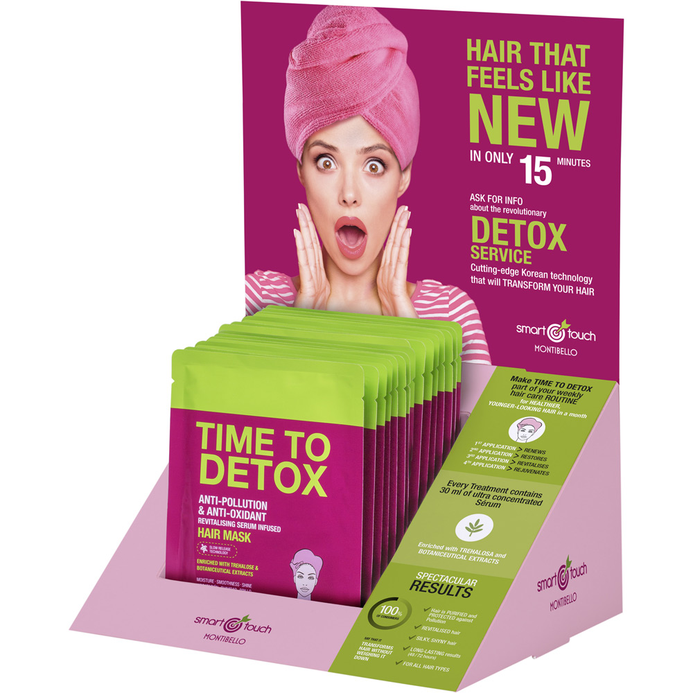 Απολαύστε αυτή την επαγγελματική, εντατική εβδομαδιαία θεραπεία Detox η οποία καθαρίζει σε βάθος τα μαλλιά σας από τους ρύπους και τα συσσωρευμένα περιβαλλοντικά κατάλοιπα.