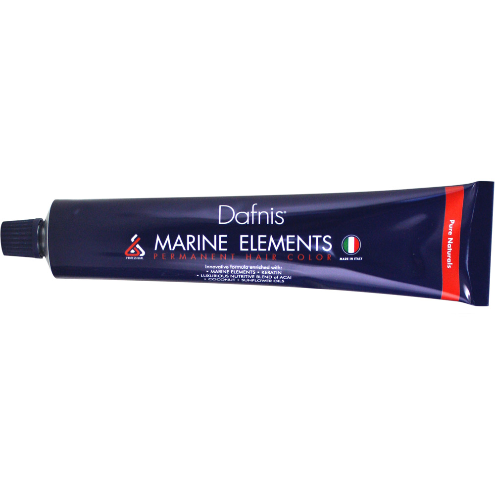 Κρεμώδης μόνιμη βαφή μαλλιών Marine Elements από τη DAFNIS, εμπλουτισμένη με στοιχεία θαλάσσιας προέλευσης και κερατίνη.