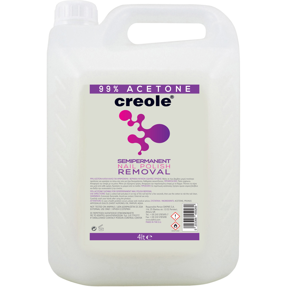 Ασετόν 99% της CREOLE, κατάλληλο και για αφαίρεση ημιμόνιμων βερνικιών.