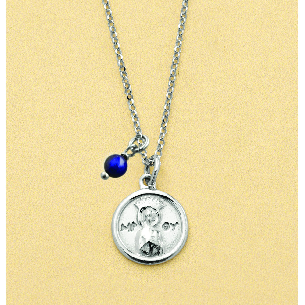 Aλυσίδα με Μοτίφ Μαντόνα & Λάπις , ασήμι 925.