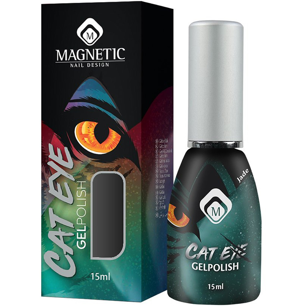 Η σειρά των Gel Polish Cat Eye περιέχει μεταλλικά σωματίδια τα οποία ενεργοποιούνται με το πέρασμα του μαγνήτη Magnet for Cat Eye Effect δημιουργώντας το σαγηνευτικό cat eye look.