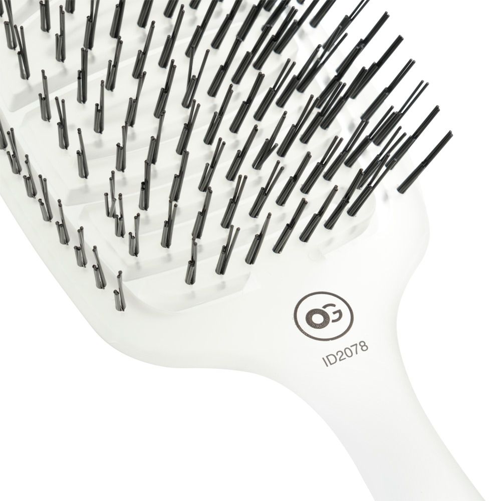 Βούρτσα σε χρώμα Ice White, ειδική για να ξεμπερδεύει τα λεπτά μαλλιά χωρίς πόνο, από τη σειρά Essential Care Flex της OLIVIA GARDEN.