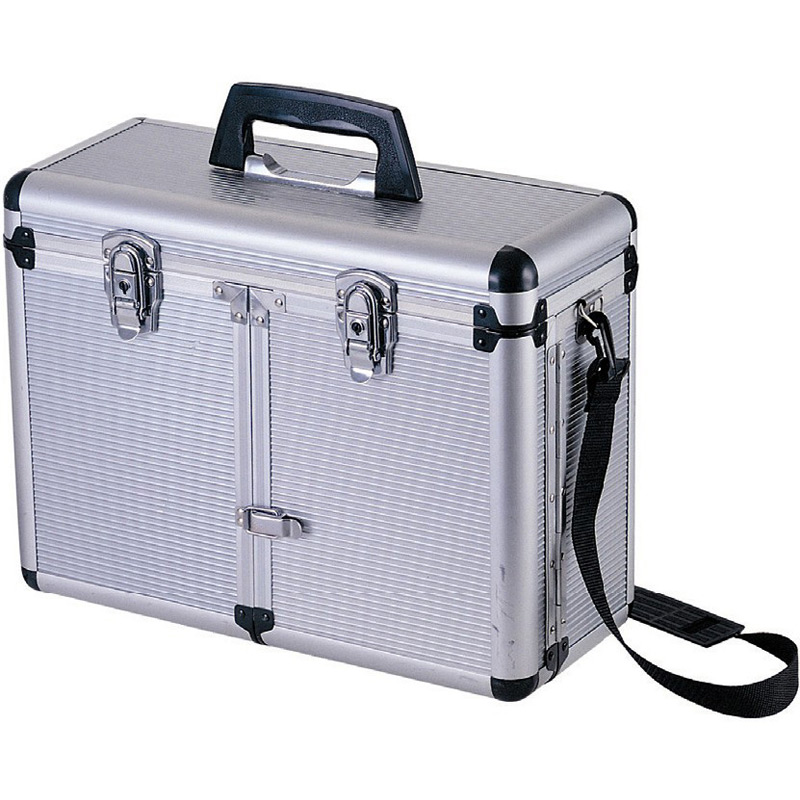 Μεταλλικό βαλιτσάκι σε ασημί χρώμα.