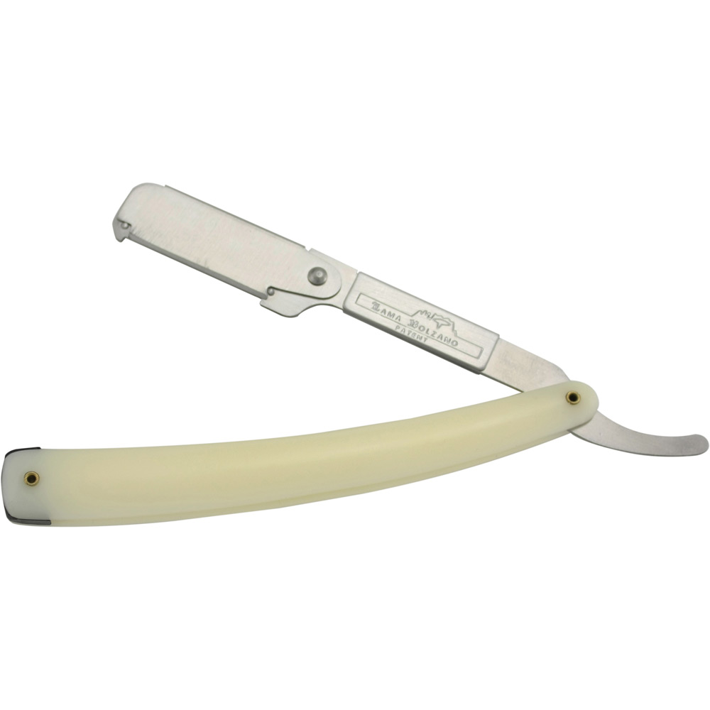 Ξυράφι κουρείου με πλαστική λαβή σε μπεζ ή μαύρο χρώμα.