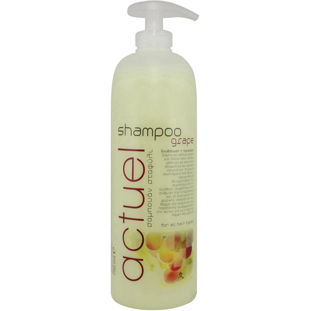 Σαμπουάν actuel grape για όλους τους τύπους μαλλιών, με εκχύλισμα σταφυλιού και φυτικές πρωτεΐνες.