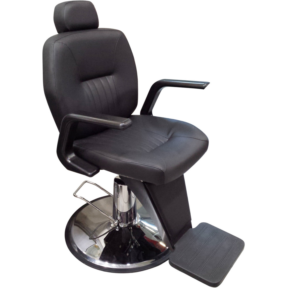 Κλασική πολυθρόνα κουρείου με προσκέφαλο και ανακλινόμενη πλάτη.